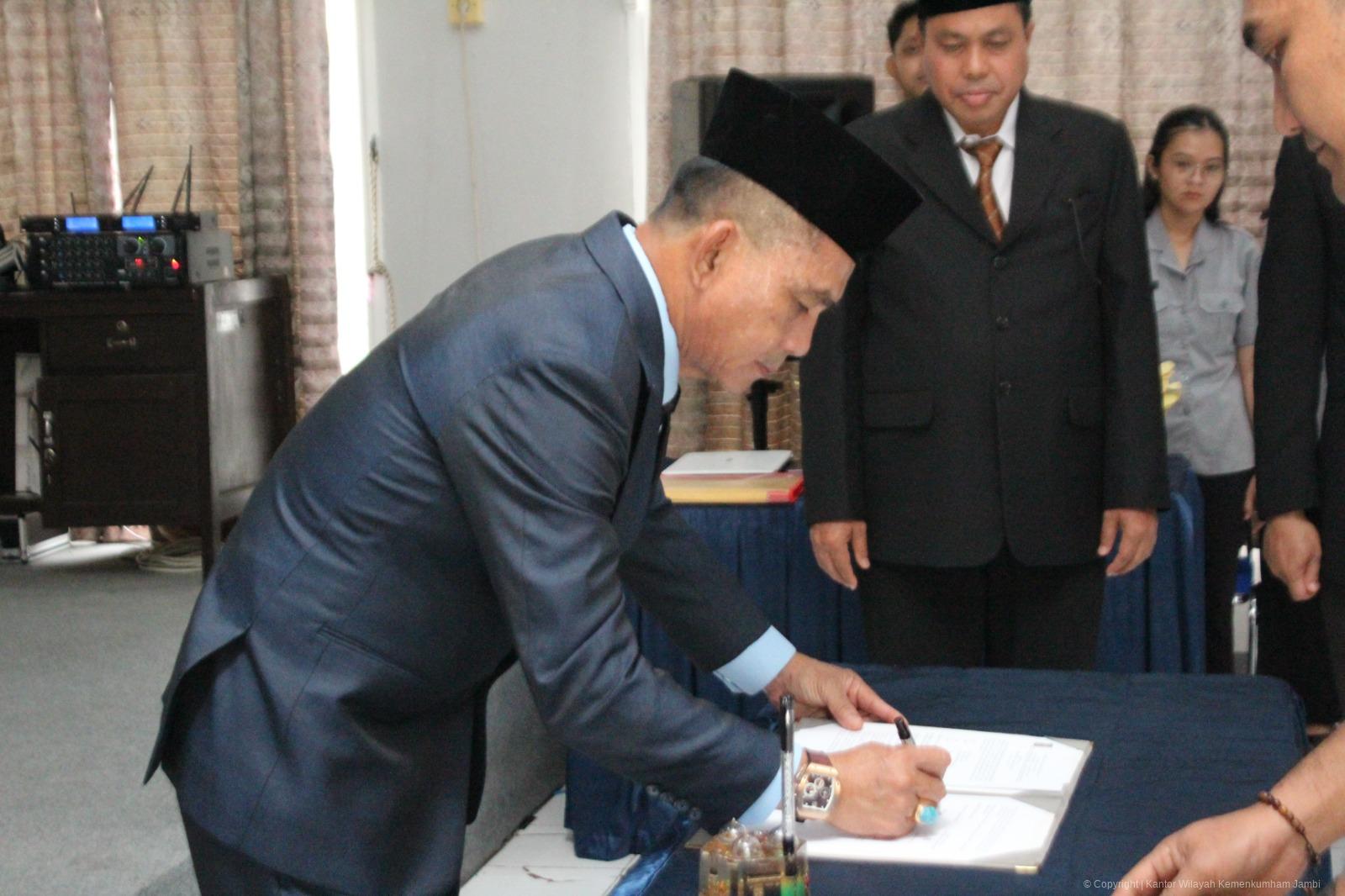 JAMBI - Kepala Kantor Wilayah Kementerian Hukum dan HAM Jambi Elly Yuzar melantik dan mengambil sumpah jabatan 1 (satu) orang Pejabat Penyidik Pegawai Negeri Sipil (PPNS) dan 1 (satu) orang Notaris serta 1 (satu) orang Notaris pengganti, bertempat di Aula Sahardjo Balai Pemasyarakatan Jambi, Selasa (03/12/2024).