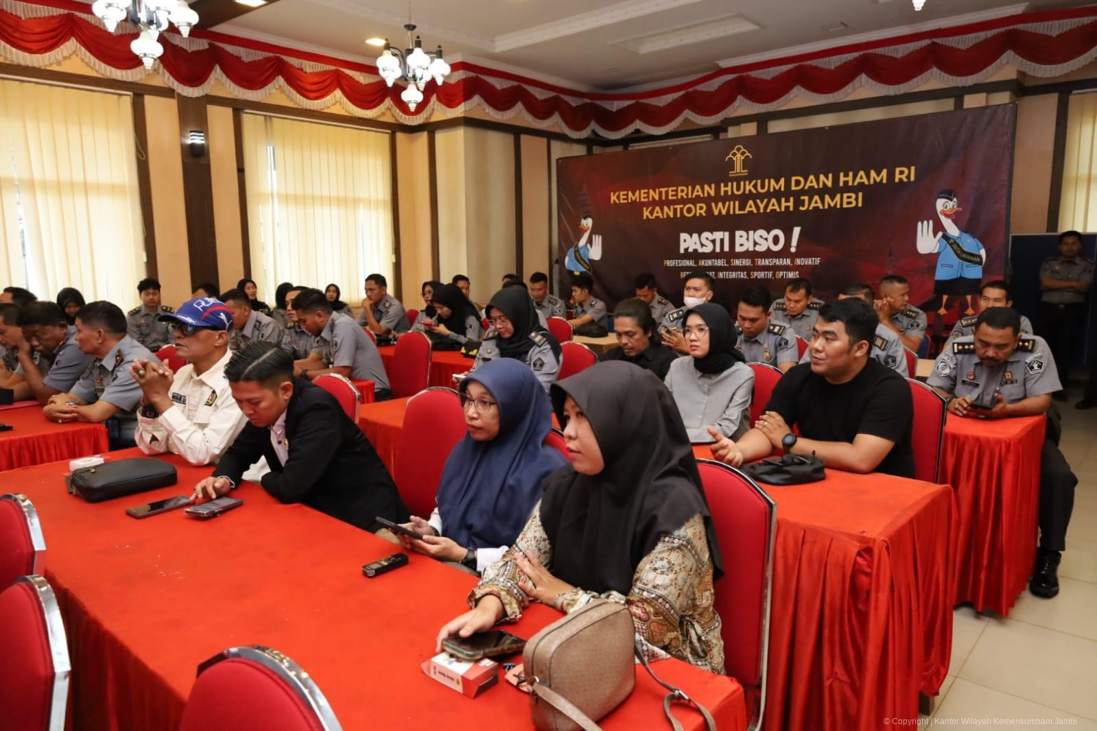 Jambi, 4 November 2024 – Kantor Wilayah Kementerian Hukum dan Hak Asasi Manusia (Kemenkumham) Jambi menggelar kegiatan Pembinaan Kehumasan dengan tema "Transformasi Digital Kehumasan melalui Konten Digital dan Media Sosial." Kegiatan yang berlangsung selama dua hari, dari 4 hingga 5 November 2024, bertempat di Aula Kantor Wilayah Kemenkumham Jambi ini, dihadiri oleh perwakilan humas dari berbagai unit pelaksana teknis (UPT) Pemasyarakatan dan Imigrasi se-Jambi.